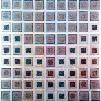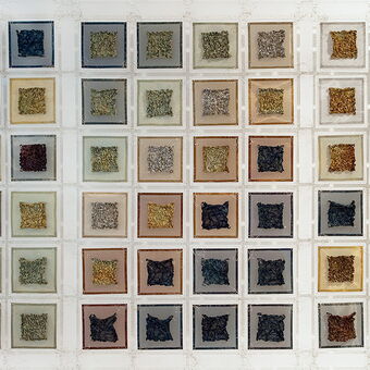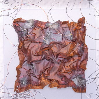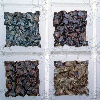 Wandobjekte aus Stahl, Kupfer, Messing und Bronce oxidiert, Plexiglas und Inoxdraht